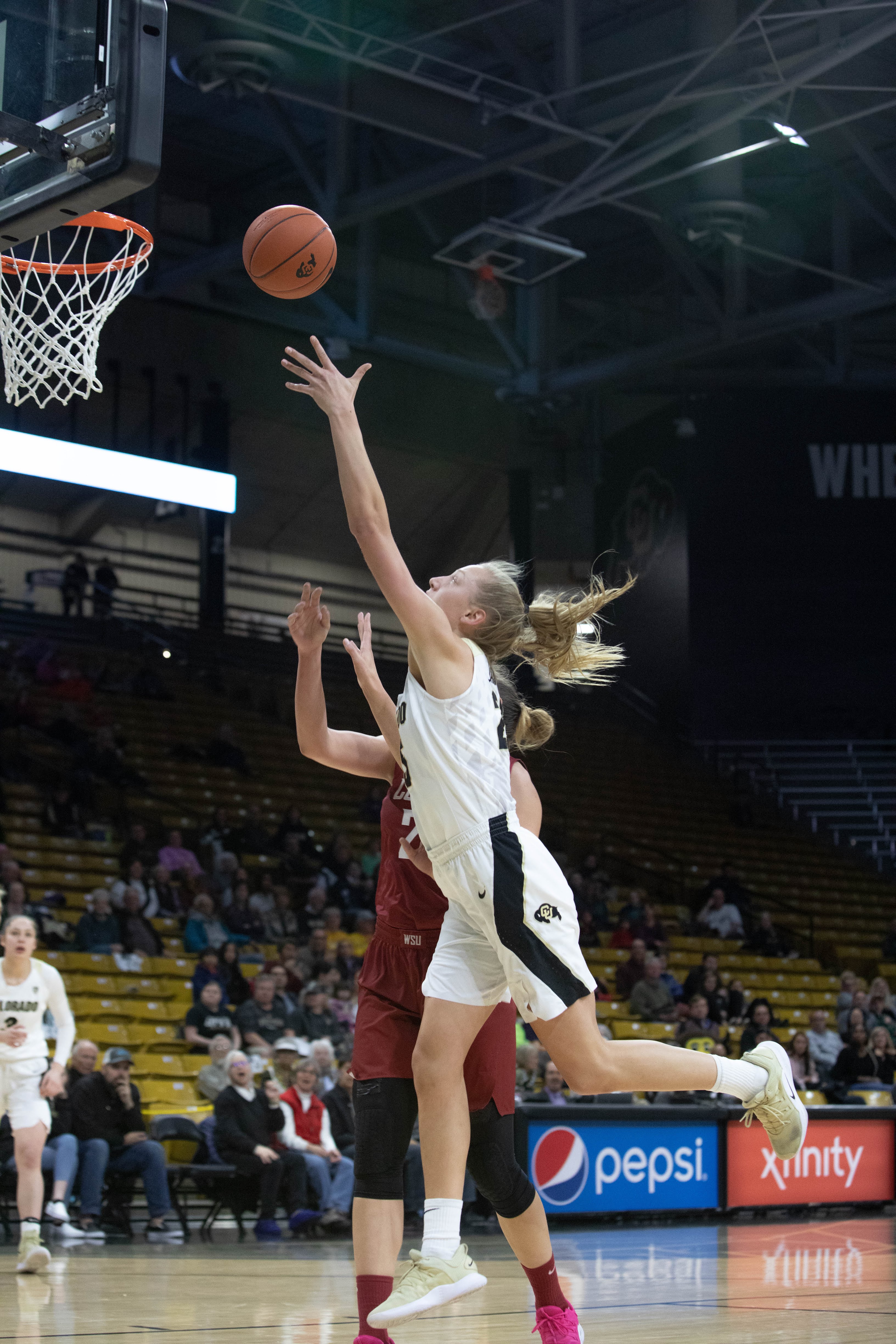 To add to her 20-point performance, Caylao-Do scored another eight in the final period. Colorado held the lead throughout the entire fourth quarter and only gave up seven points to Washington State. WSU was able to get to within four points of CU’s lead at the 2:59 mark, but they were finally put away when freshman guard Emma Clarke, banked in a three-pointer in the final two minutes.