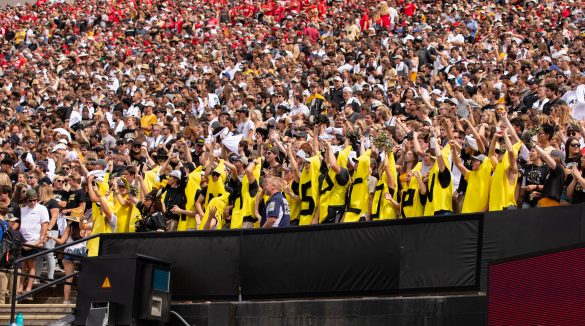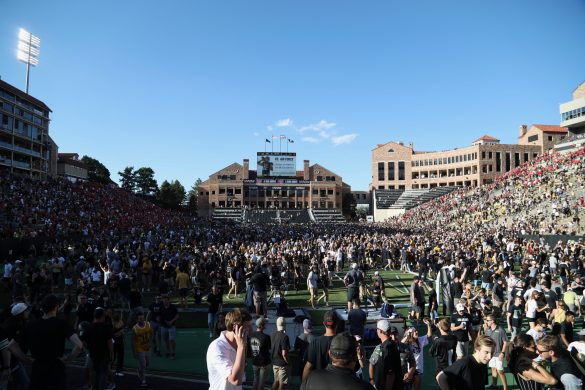 The Buffs got the ball first in overtime and after a few attempts at the end-zone, settled for a field goal. All the attention then shifted to defense. CU got a huge sack from Mustafa Johnson that pushed Nebraska to the edge of field goal range. But the Nebraska kicker couldn’t connect from 48-yards out and missed to the right of the goalpost. Colorado fans stormed the field as CU claimed victory 34-31.