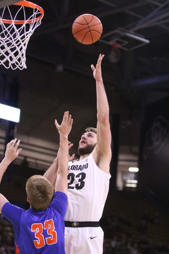 CU hosted an exhibition game for the third-straight season and faced off against the Division III Pomona-Pitzer Sagehens for the first time in school history. The Buffs were led by sophomore forward Evan Battey and sophomore guard D’Shawn Schwartz who combined to score 28 of the Buffaloes’ 87 points. Junior center Dallas Walton, who made his return after injuring his ACL last year, also made a big impact for the CU Buffs, scoring nine points on 4-of-5 shooting.