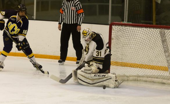 Colorado senior goalie Grant Payne began the game with a .851 save percentage so far in the season. He is one of only three seniors on the team and stepped up into a leadership role this season following a break due to a collarbone injury.