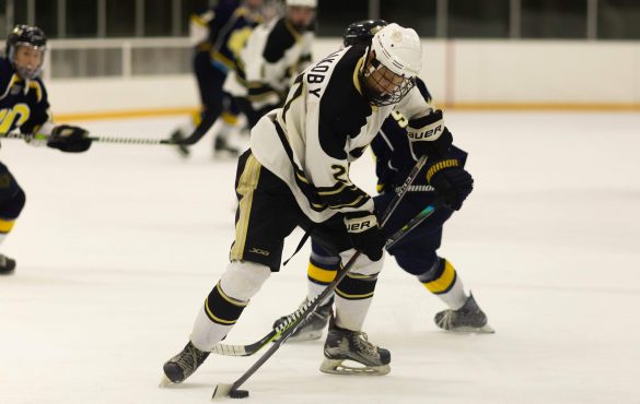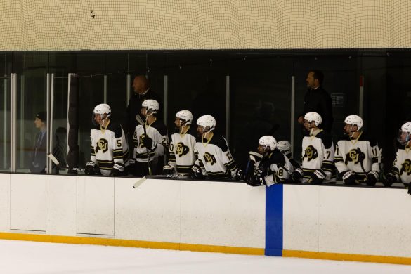 Head Coach Brent “Benny” Tollar has been working on consistency and the team showed clean passes and shots on goal tonight. Sophomore forward Brendan Hansen pursued four shots on goal in the first period and successfully landed a goal at the start of the second. Within 30 seconds of the drop of the puck, Hansen scored through the five-hole with an assist from sophomore forward Adam Trunko, bringing the Buffs up 2-0.
