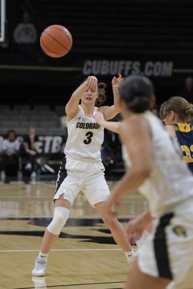 Later in the fourth quarter, Sherrod pushed the ball in transition and found junior forward Annika Jank for a corner three. In an impressive CU debut, Sherrod attacked the Regis press late and put back her own miss to give the Buffs a 50-point lead. Colorado defeated Regis 92-45.