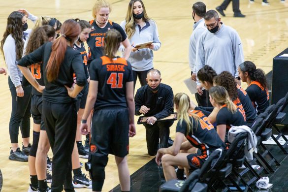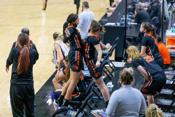 Five straight points from the Beavers to open the half led to a seven-point advantage. Missed field goals for both sides combined with a few Oregon State turnovers allowed the second half to progress with little scoring. The Beavers led 46-43 at the 4:55 mark of the third period. A turnaround jump-shot from junior guard Aubrey Knight knotted the game at 48. Momentum appeared to shift late in the period as Oregon State struggled to take care of the ball, but once again the three-pointer proved crucial. The Beavers’ ninth deep ball gave them a three-point lead after 30 minutes.
