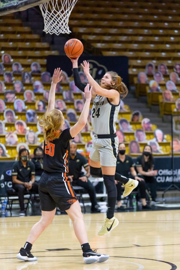 Two games removed from an upset victory over No. 1 Stanford, Colorado (6-7, 4-6 Pac-12) returned home to CU Events Center to host Oregon State (4-5, 2-5 Pac-12). The Colorado Buffaloes looked to right the ship Friday night after falling to the Sun Devils in Tempe a week ago. Recent postponements because of COVID-19 forced a seven-day hiatus in between games for the Buffaloes. Colorado fell 72-64 to the Beavers after a critical opening stretch in the final quarter.