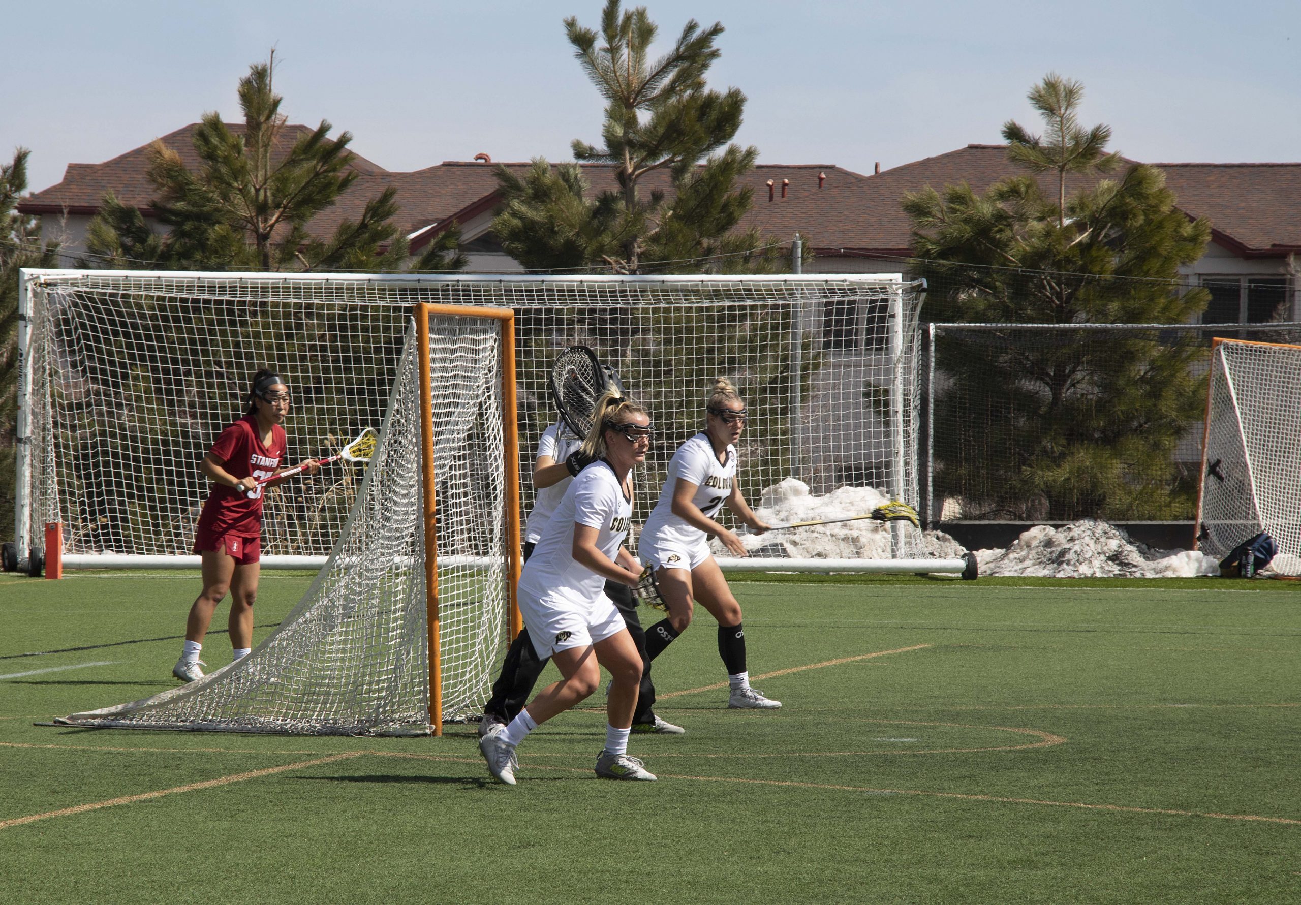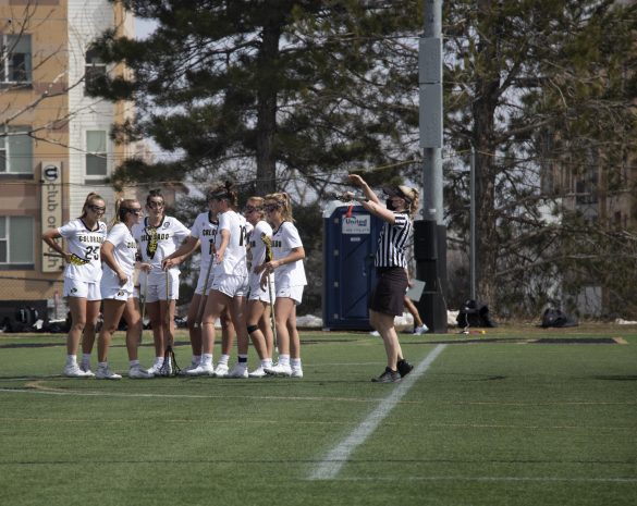Two Stanford goals gave some momentum to the Cardinal, but with under 1:30 left in the game and the ball in the offensive zone with a full 90-second shot clock, it appeared the Buffs would be able to hang on to the win. In desperation, the Cardinal pulled their goalie to try and force a turnover. After a few physical plays resulting in fouls, Stanford’s desperation tactics paid off as Stanford created a turnover and marched the ball downfield to score with 22 seconds remaining to tie the game at nine.