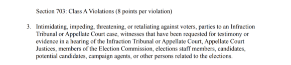 The section of the election code that focuses on intimidation. (Courtesy of CUSG Election Commission)