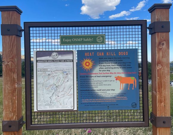 Our beloved Chautauqua Park has made it abundantly clear that our dogs are suffering heat-related health issues. At the trailhead, there is a sign with a graphic cartoon image of a dog suffering from heat stroke, proceeding the title “Heat Can Kill Dogs.” The signage describes the symptoms of a heat emergency as extreme panting, unwillingness to walk, darkened colored gums, thick saliva and overall disorientation.