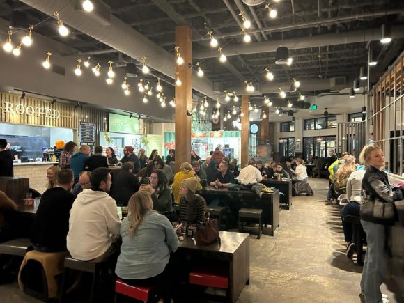 Guests sit in at the Avanti Food and Beverage weekly “Smarty Party” trivia night on Feb. 21, 2023. The Daily He(a)rd, a student-run public relations campaign, collaborated with the eatery for the night. (Gabbie Burton/CU Independent)