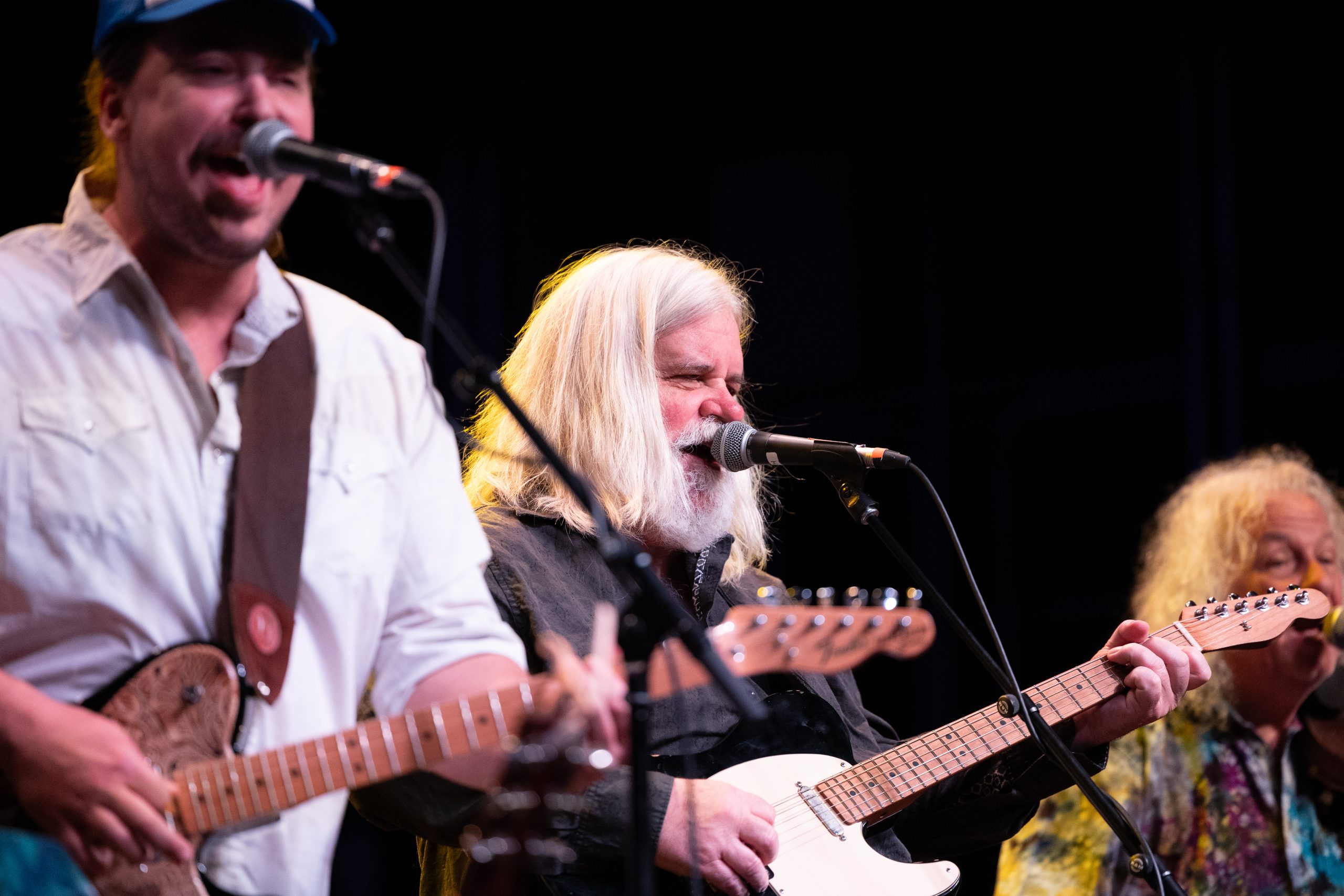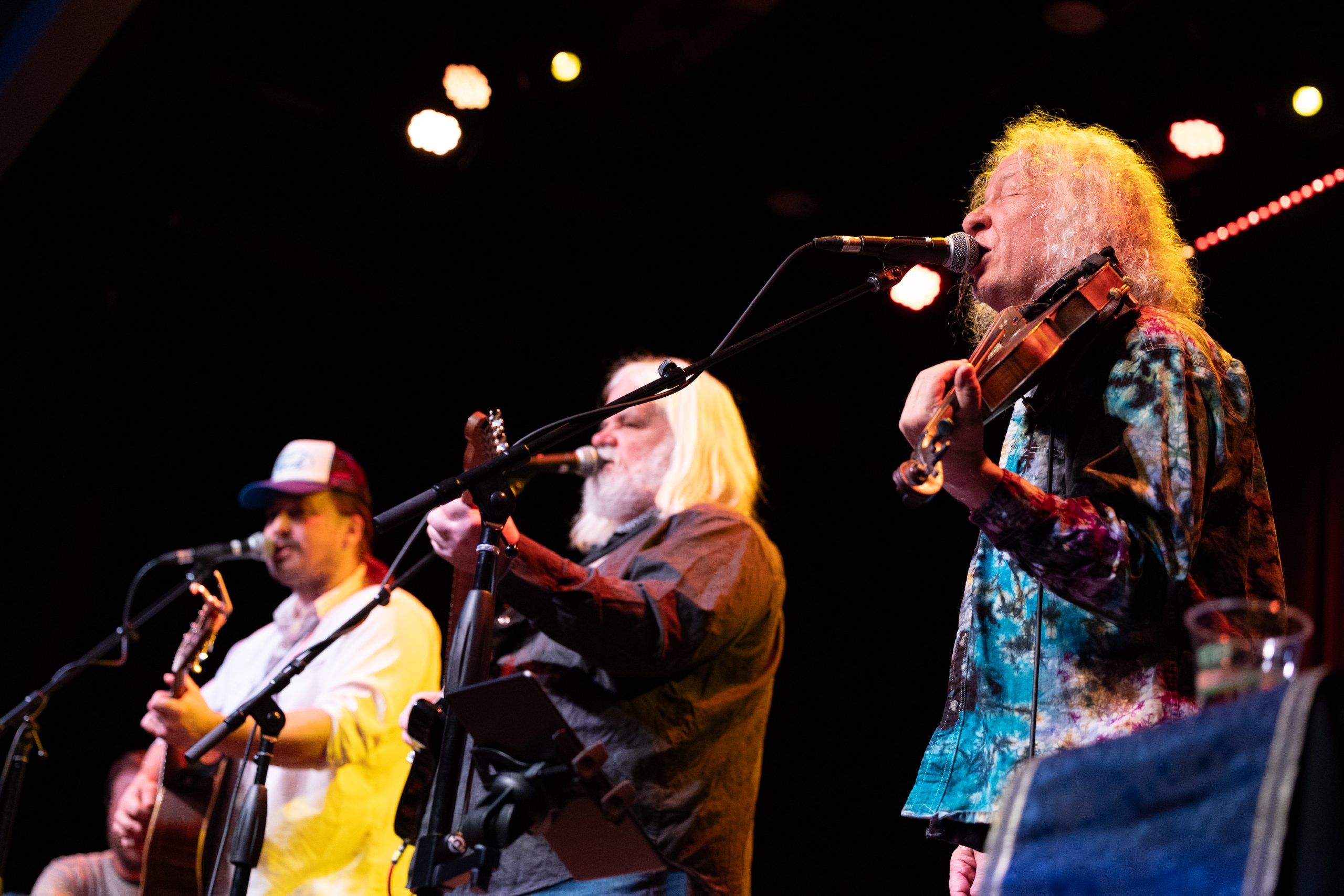 High hawks vocalists Tim Carbone (right), Vince Herman and Adam Greuel perform together during the show at the eTown Music Hall in Boulder, Colo. on Saturday, Feb. 17, 2024. (Clementine Miller/CU Independent)