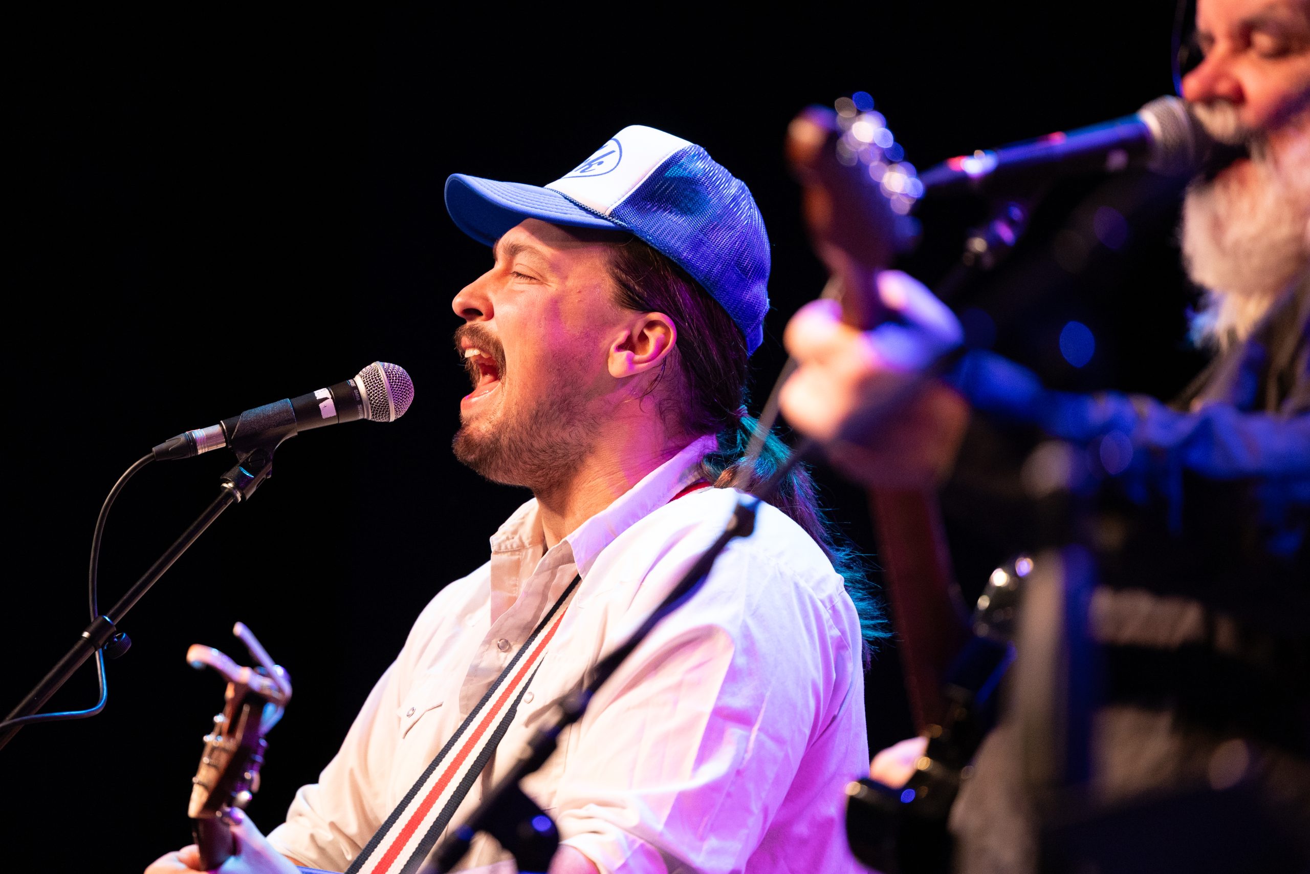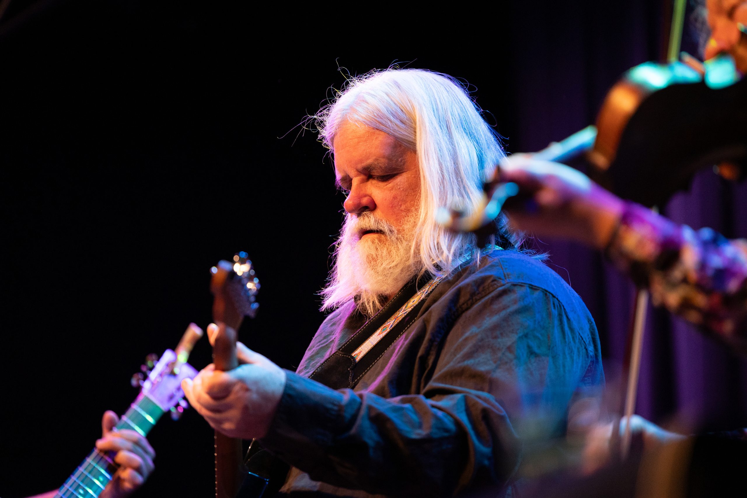 High Hawks guitarist and vocalist Vince Herman plays the electric guitar during the show at the eTown Music Hall in Boulder, Colo. on Saturday, Feb. 17, 2024. (Clementine Miller/CU Independent)