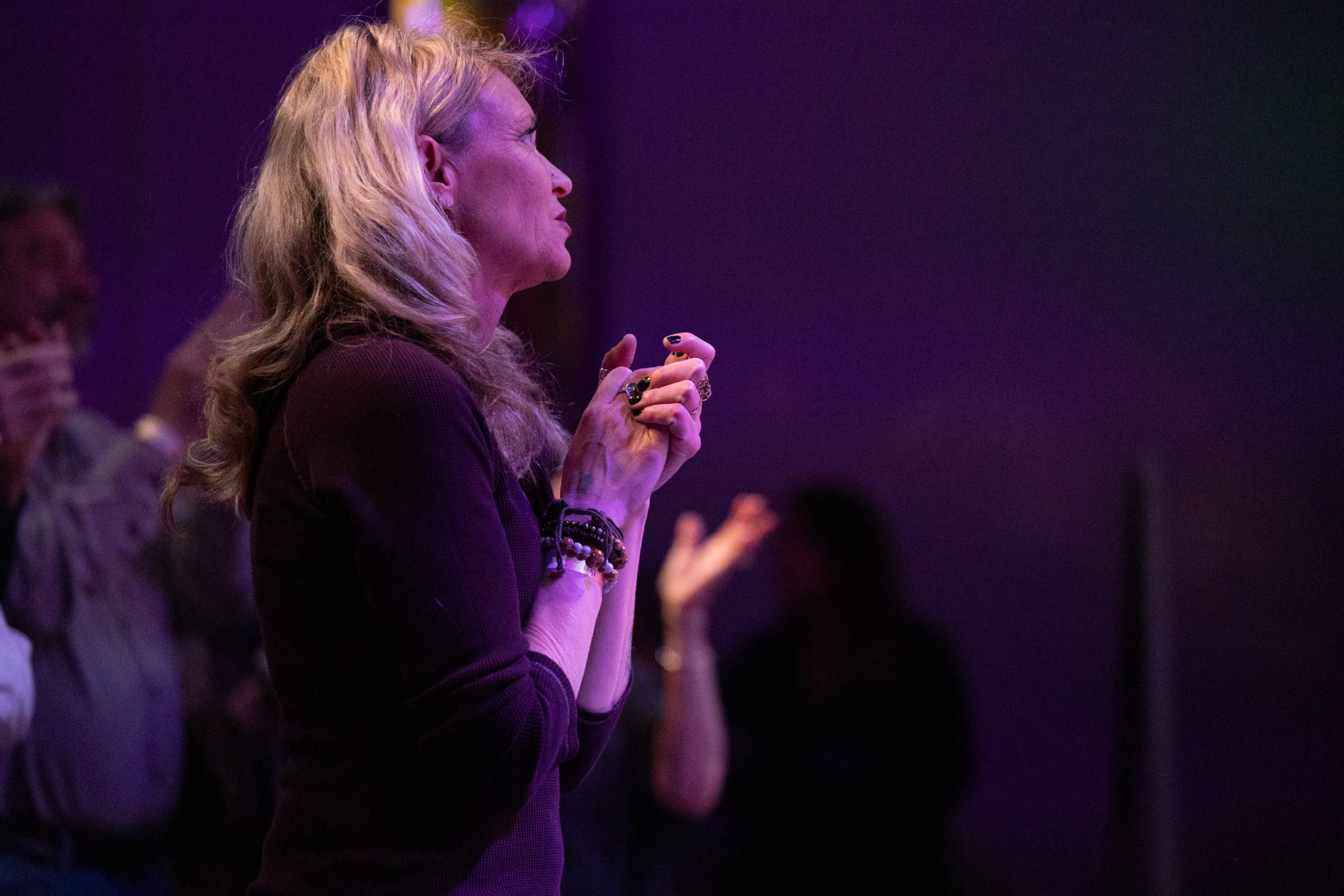 An audience member claps at the end of a song during the High Hawks show at the eTown Music Hall in Boulder, Colo. on Saturday, Feb. 17, 2024. (Clementine Miller/CU Independent)