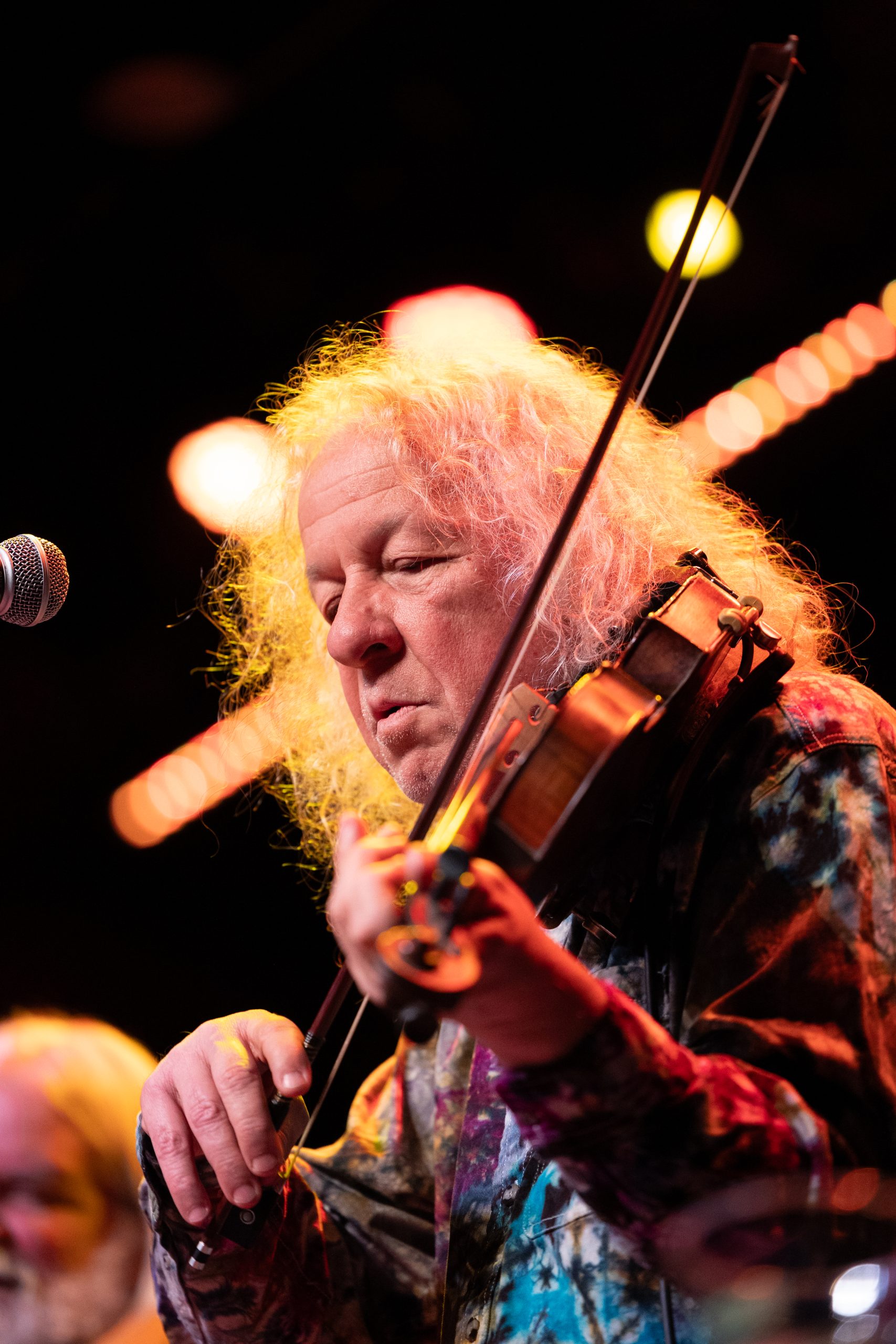 High Hawks vocalist, fiddler and guitarist Tim Carbone (right) looks out at the crowd while performing at the eTown Music Hall in Boulder, Colo. on Saturday, Feb. 17, 2024. (Clementine Miller/CU Independent)