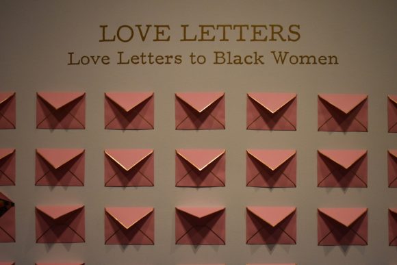 “Love Letters to Black Women,” designed by Ross, is a collection of open envelopes inviting guests to leave a love letter or positive affirmation after seeing the exhibition. Billingsley and Ross encourage guests who visit to both take one for themselves and leave one for a future guest.