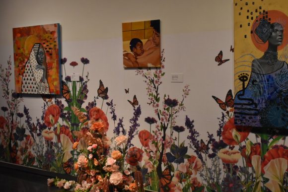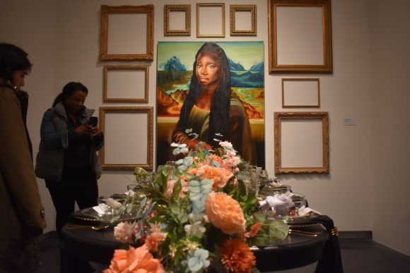 The exhibit featured works such as “A Seat at the Table,” which was conceived by Ross and Billingsley and designed by artists Eileen Herrera and Kiana Gatling with florals from Black + Blossomed, a Black-owned floral design business located in Denver. The table serves as a symbolic feast in which elements of the table represent the multifaceted roles of Black women throughout history.