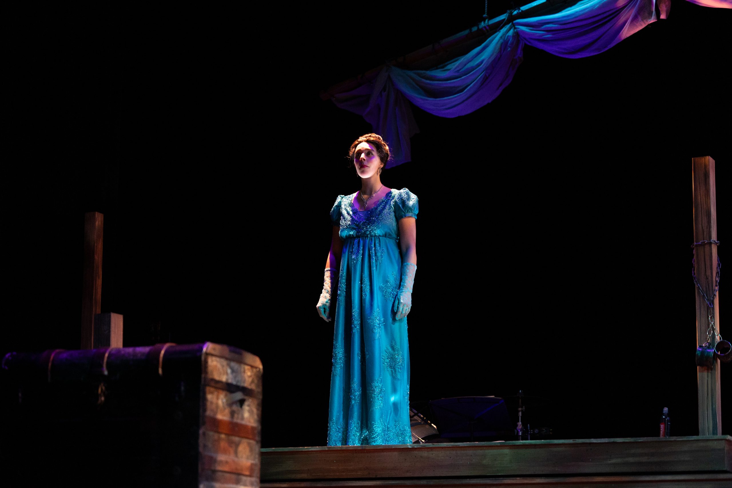 Kristina Butler playing The Lady Valerie performs during a dress rehearsal for “Cabildo” by Amy Beach for the University of Colorado Boulder’s “American Stories by American Women” performance in the Imig Music Building Music Theatre on Monday, April 22, 2024. (Clementine Miller/CU Independent)