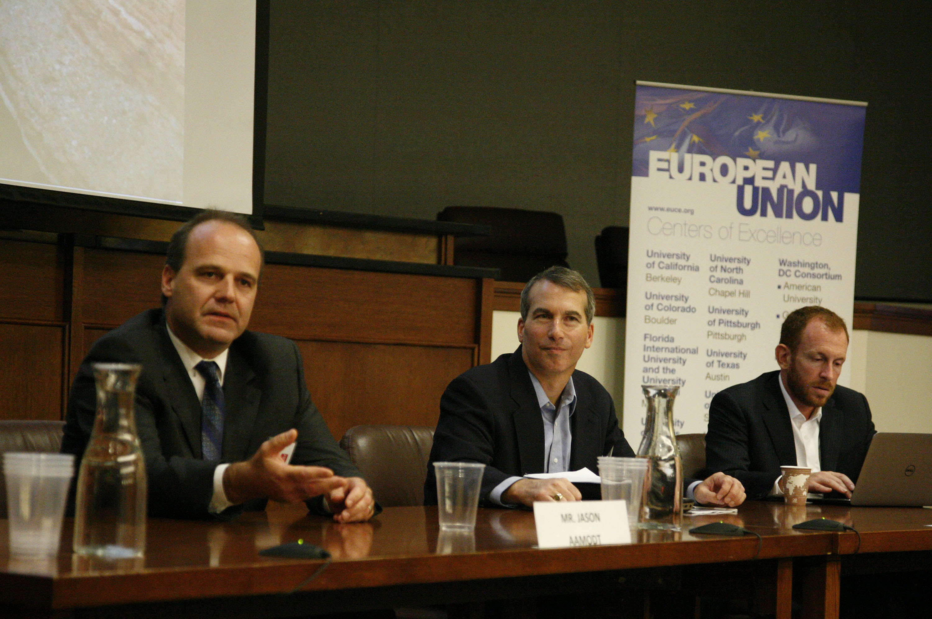From left, Jason Aamodt, Dr. Paul Chinowski, and Dr. Morgan Bazuan at the Energy Justice Conference Monday, Sept. 17, 2012. The three discussed implementing plans to provide energy to deprived nations and answered questions from the audience. (CU Independent/Gary Sheer)