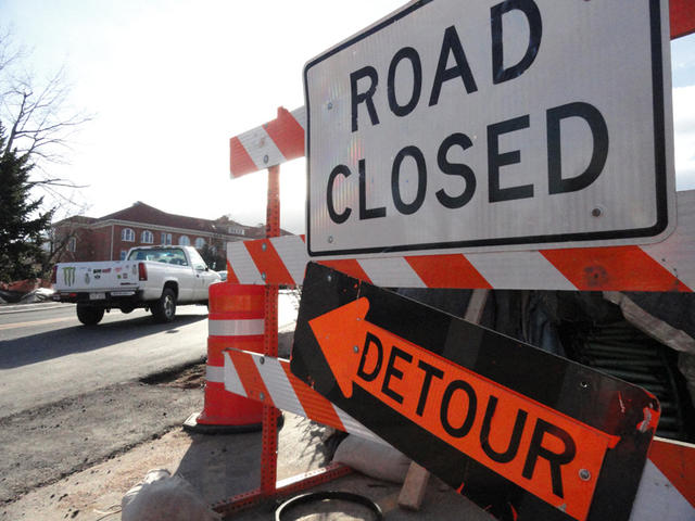 Roadwork signage on Euclid Ave. at Broadway St. on Jan. 23, 2012. (CU Independent/Robert R. Denton)