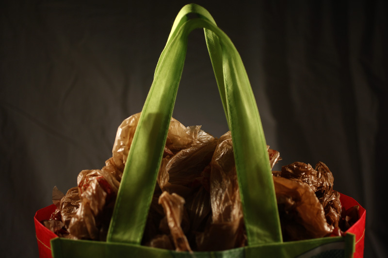 A reusable grocery bag with many plastic bags inside. The Boulder City Council recently passed legislation to tax each non-reusable bag 20 cents at the register. (CU Independent Photo Illustration/Robert R. Denton)