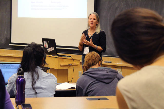 Mary O’Brien of the Black Bear Earth Arts and Woodline Ecology Center presents information on more than 20 medicinal plans for a healing garden Saturday. (Gary Sheer/CU Independent).