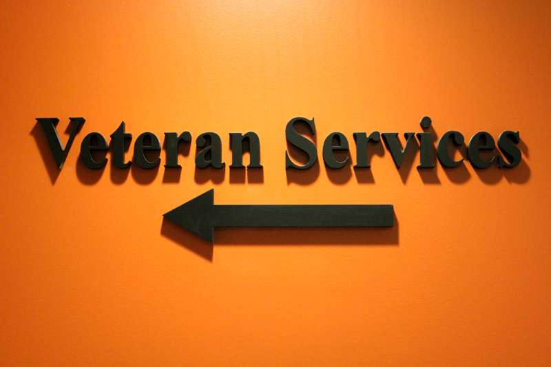 The sign outside of the Veteran Services office on the fourth floor of the C4C. (Kai Casey/CU Independent)
