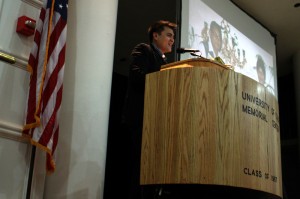 Jose Antonio Vargas, a former Pulitzer-Prize winner, gives a speech on what it means to be American, an immigrant and a part of a minority. (Rachel Ramberg/CU Independent)
