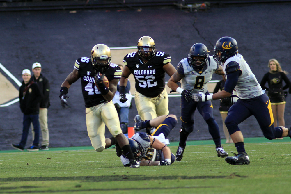 The University of Colorado (4-6, 1-6 Pac-12) took down the University of California at Berkeley (1-10, 0-8 Pac-12), Saturday at Folsom Field in Boulder by a score of 41-24. The win was CU’s first ever home Pac-12 win.