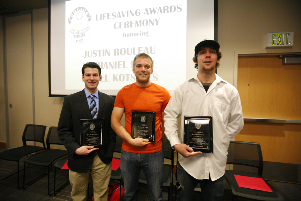 CU police honored three students with the “Lifesaving Award,” the highest possible honor the department can present to the public, on Wednesday in the Kittredge Central Multipurpose Room.
