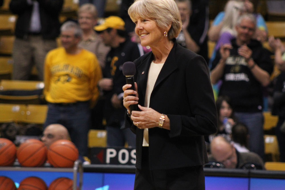 Throughout Sunday’s game, CU honored many of its women’s basketball alumnae as part of the school’s celebration of the program’s 40th year. Colorado’s first women’s athletic director Jane Wahl, who oversaw the introduction of women’s varsity sports at CU in the 1970s, became the first ever recipient of the Jane Wahl Legacy Award at half time, an award named in her honor.
