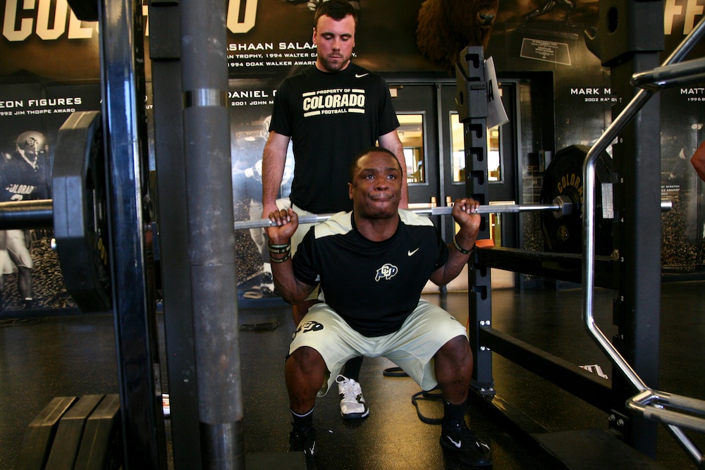 Senior tailback Tony Jones squats during an afternoon workout. (Nate Bruzdzinksi/CU Independent) Nate Bruzdzinski Nate Bruzdzinski is a junior studio art major, photographer, nature enthusiast, sports buff (pun intended), and admirer of anyone with a british accent. Follow him on Twitter and Instagram @nathbruz. nathan.bruzdzinski@colorado.edu