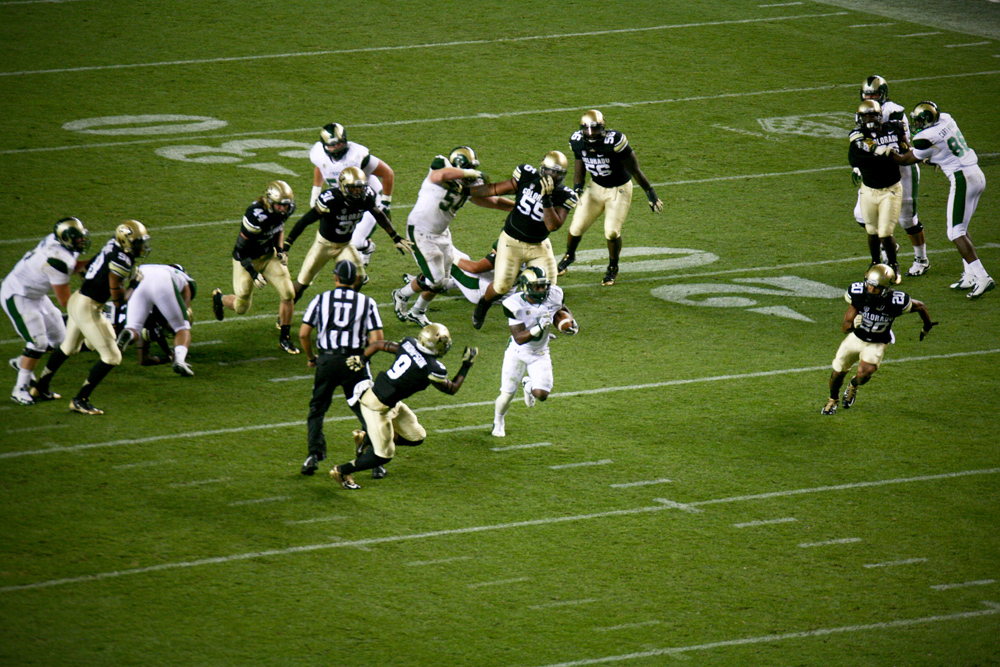 Colorado State junior Treyous Jarrells rushes the ball during the second half. Jarrells finished the game with 121 yards and 1 touchdown. (James Bradbury/CU Independent)