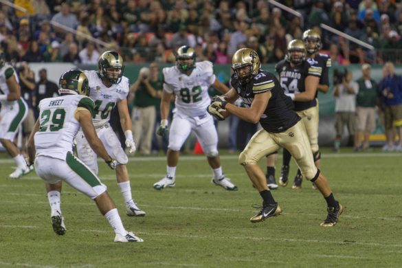 CU lost 31-17, despite promising performances from quarterback Sefo Liufau (241 yards and 2 touchdowns) and wide receiver Nelson Spruce (104 yards and 2 touchdowns). The Rams finished with 266 yards on the ground, with 139 of those coming from recent Alabama transfer Dee Hart.