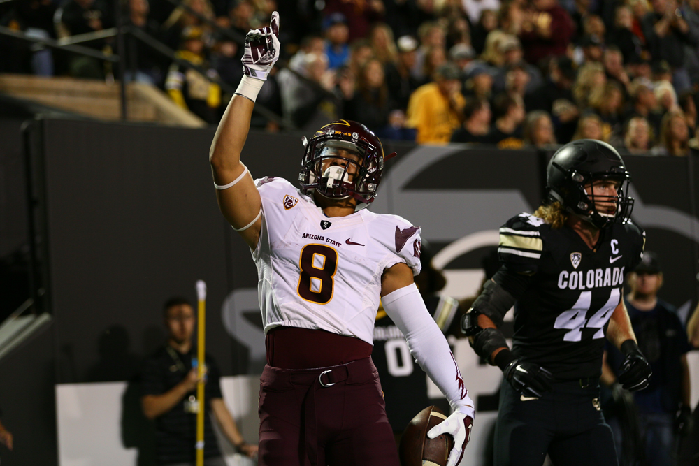 Arizona State’s D.J. Foster celebrates after giving Arizona State its first points of the game early in the first quarter. (Nigel Amstock/CU Independent)
