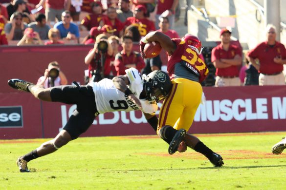 Sophomore quarterback Sefo Liufau threw an interception on his first pass of the game after two long runs from senior running back Tony Jones, setting the tone for what was to come. The Trojans outscored CU 28-0 in the first quarter and didn’t look back.