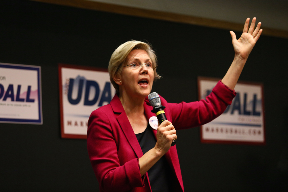 Warren addresses a packed crowd in Chem 140 at a Udall campaign event. Prior to her election to the Senate in 2012, Warren was known for being an active consumer protection advocate. (Nigel Amstock/CU Independent)