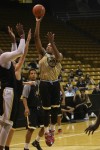 The scrimmage was the fans’ first chance to see the Buffs since their debacle in the NCAA Tournament against Pittsburgh. They watched Askia Booker’s gold squad struggle against Josh Scott’s black team.