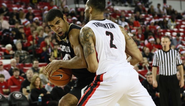 Georgia blitzed Colorado’s usually stingy defense early. Junior guard Charles Mann hit a pair of threes, and senior forward Marcus Thornton feasted in the post against any defender the Buffs threw at him. Colorado stayed level for much of the first half; junior forward Josh Scott got the Buffs started with a smooth catch-and-shoot baseline jumper, and freshman guard Dom Collier and sophomore forward Tre’Shaun Fletcher got nice transition looks.