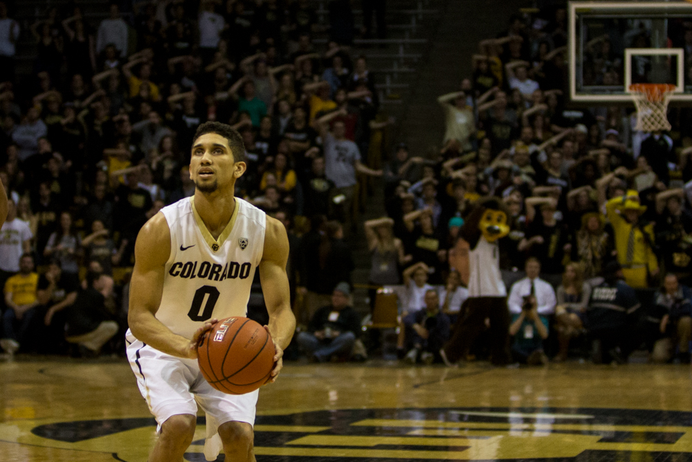Senior Askia Booker takes his last free throw at Coors Event Center during the Buffs’ 87-81 win over the ASU Sun Devils on senior night on Sunday March 1, 2015. (Robert Hylton/CU Independent)