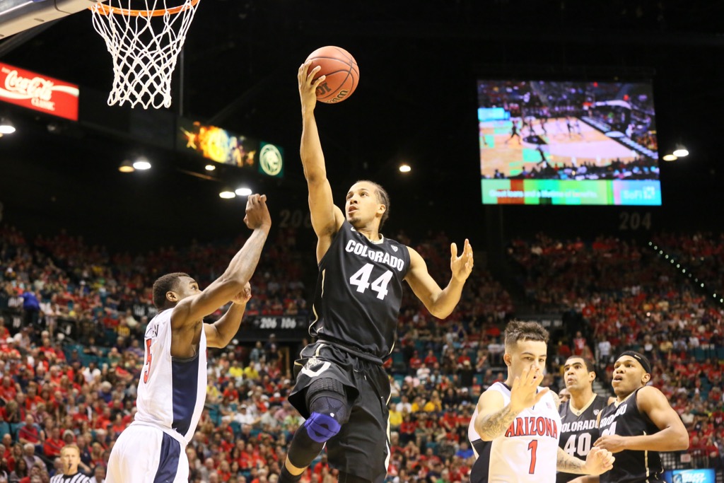 Junior guard Josh Fortune elevates the ball toward the basket midway through the second half of play at the MGM Garden Arena. March 10, 2016 (Nigel Amstock/CU Independent) Nigel Amstock
