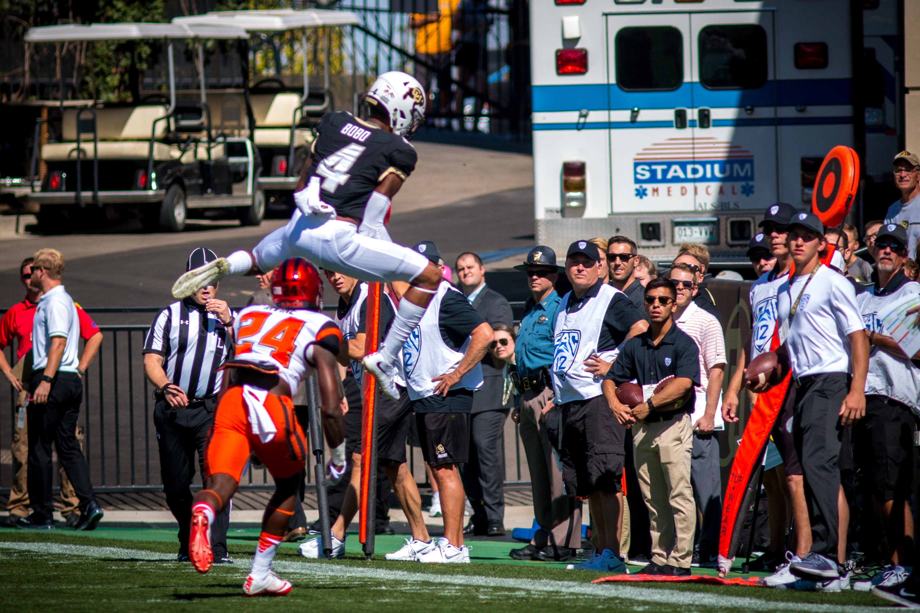 Junior wide receiver, Bryce Bobo, gets a little too high when trying to receive a throw during Buffs’ 47-6 win over the Oregon State Beavers at Folsom Field Saturday Oct. 1, 2016. (Robert Hylton/CU Independent) Alexandra Greenwood