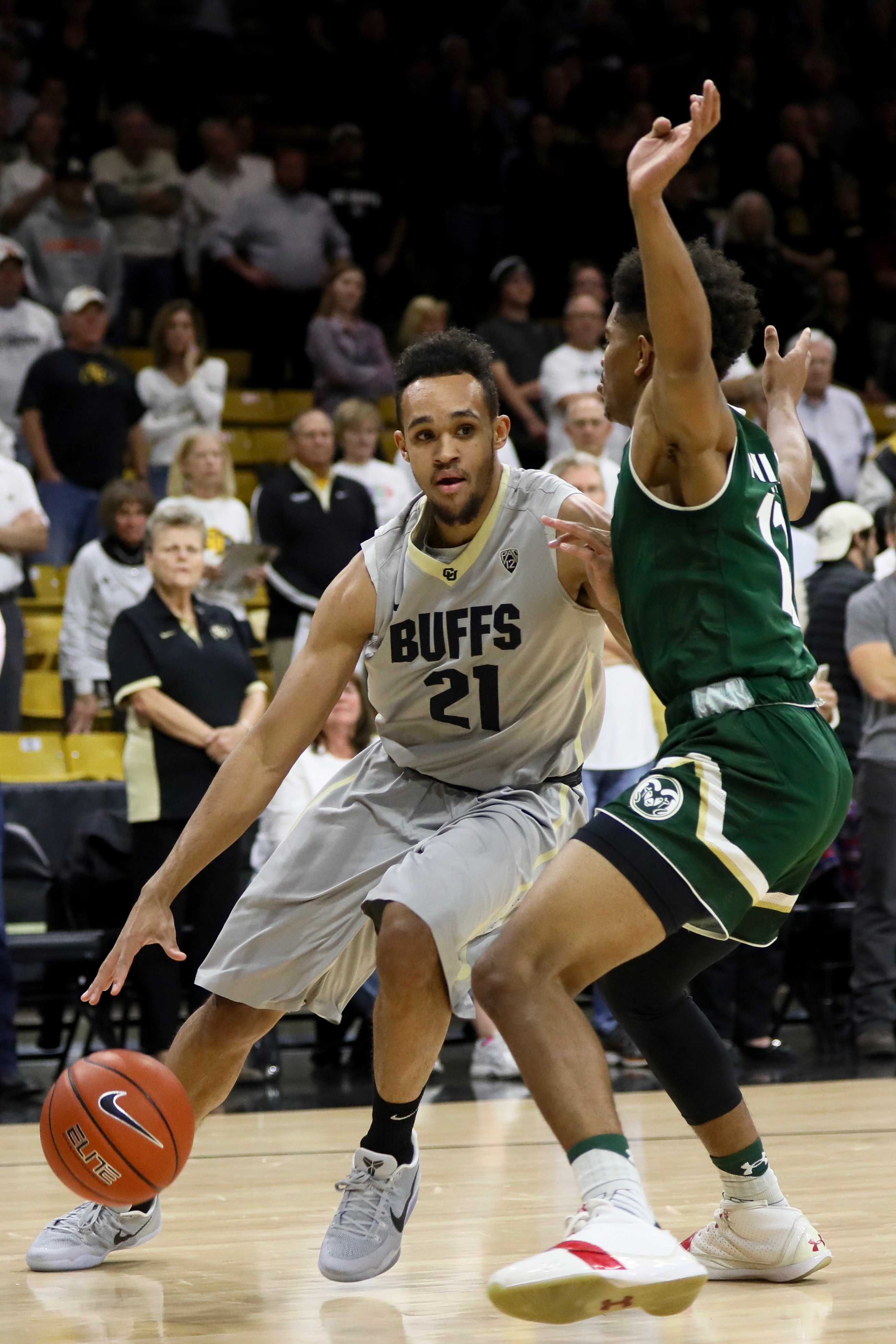 Senior guard Derrick White looks for a way around a Ram defender early in the first half of play at the Coors Events Center. Nov. 30, 2016 (Nigel Amstock/CU Independent) Nigel Amstock