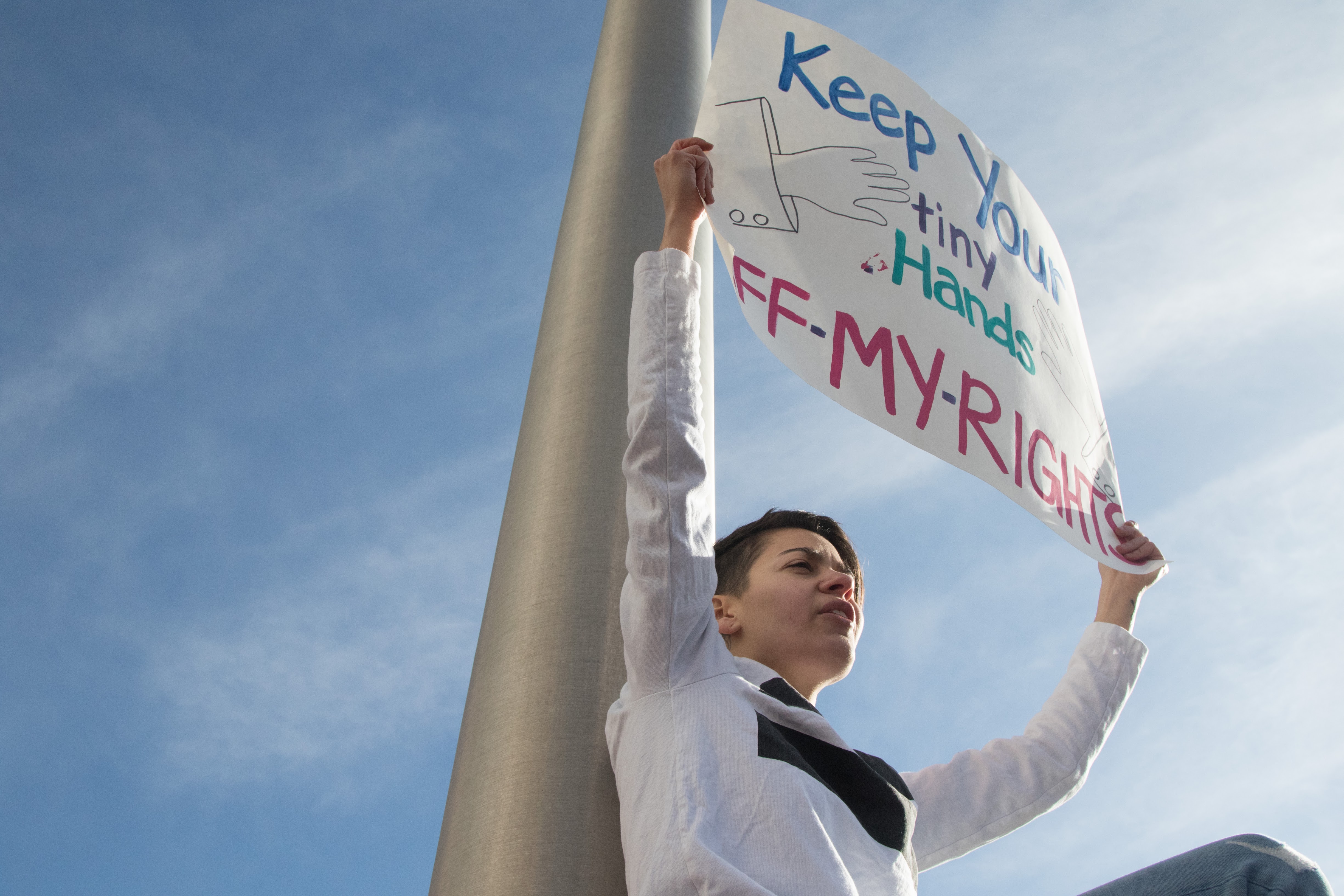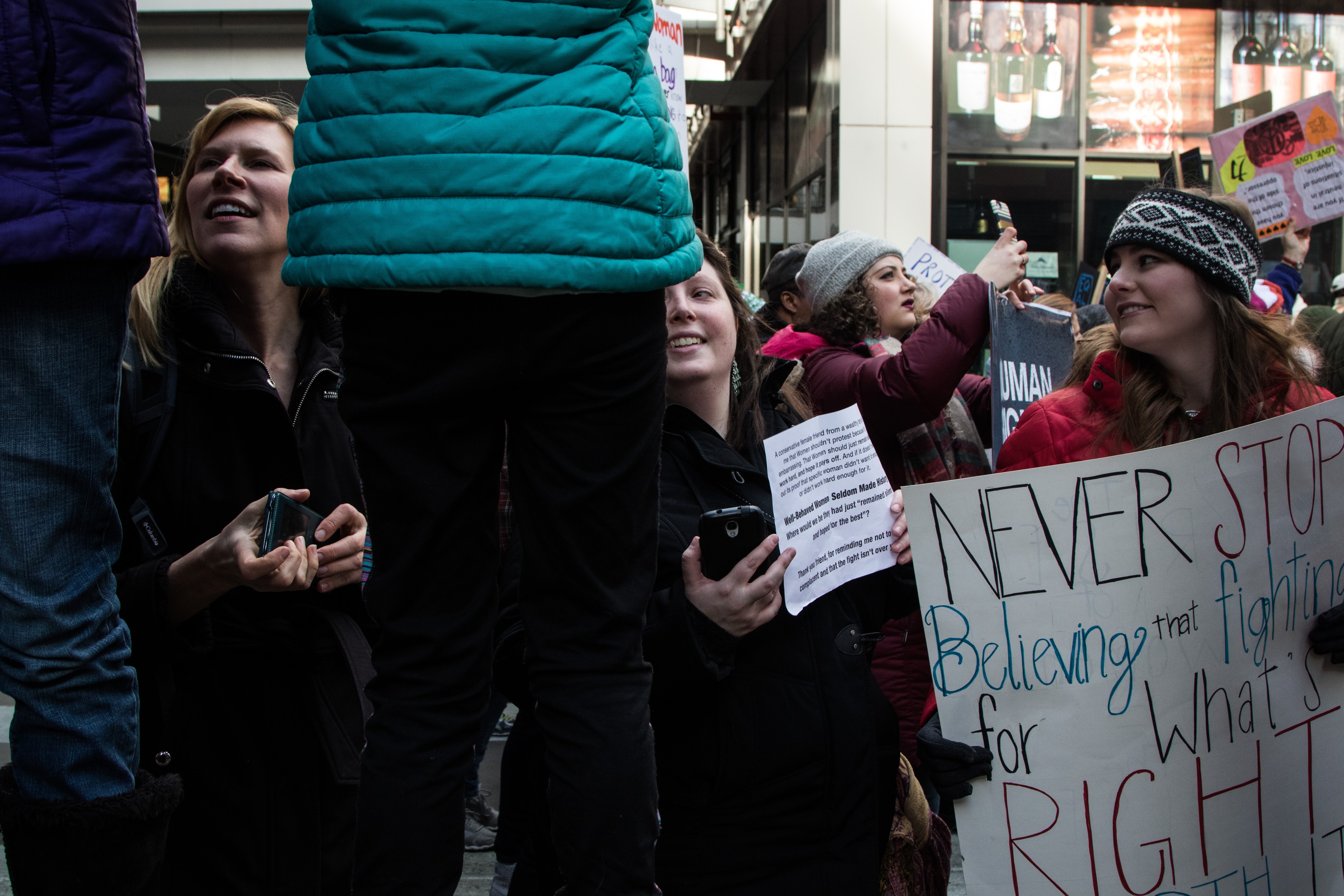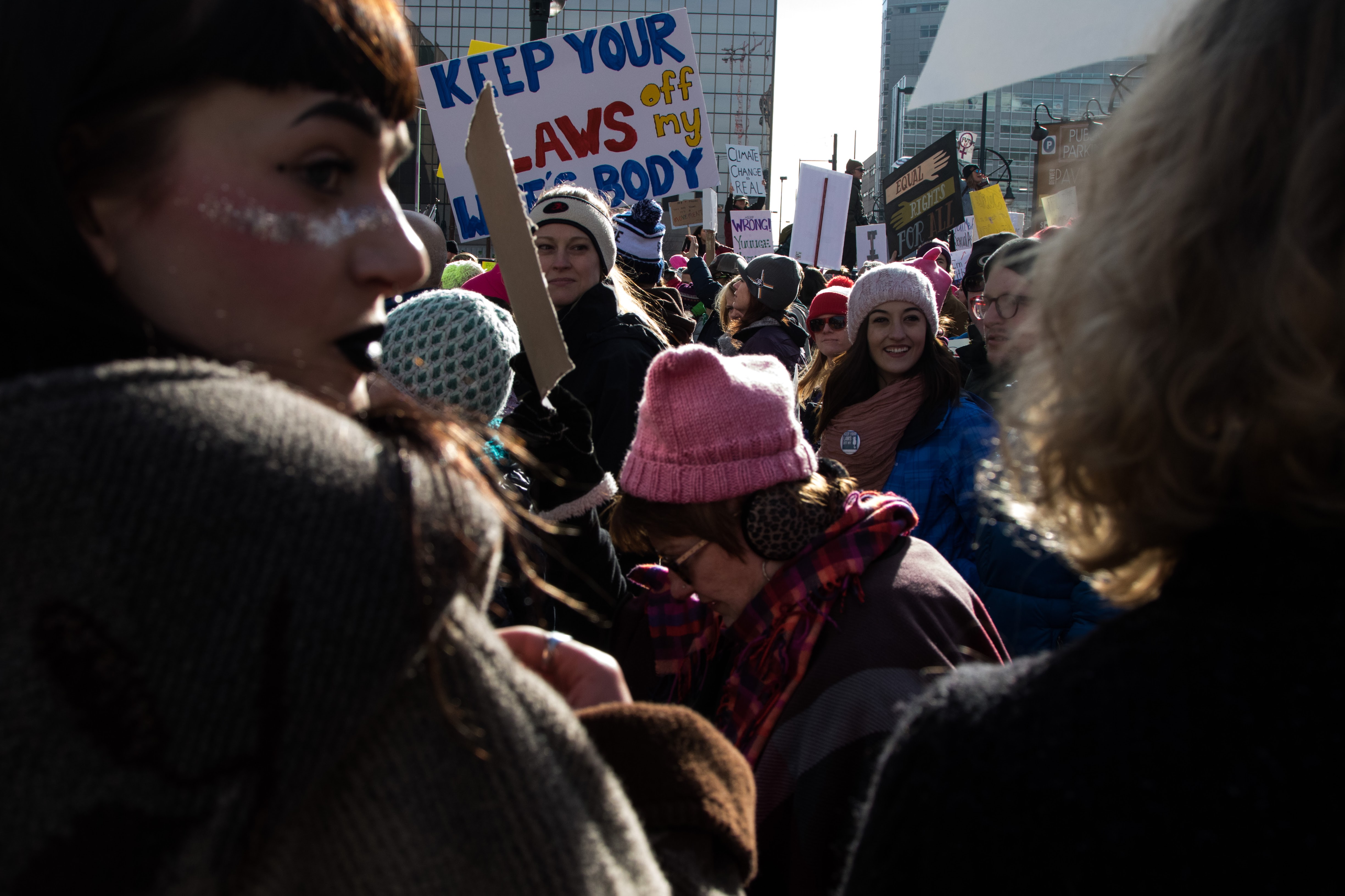 People of all ages held signs that expressed their support of reproductive rights, feminism and rebuttals of President Donald Trump’s comments on women. Some wore pink “pussy hats” as signs of solidarity with women’s issues.