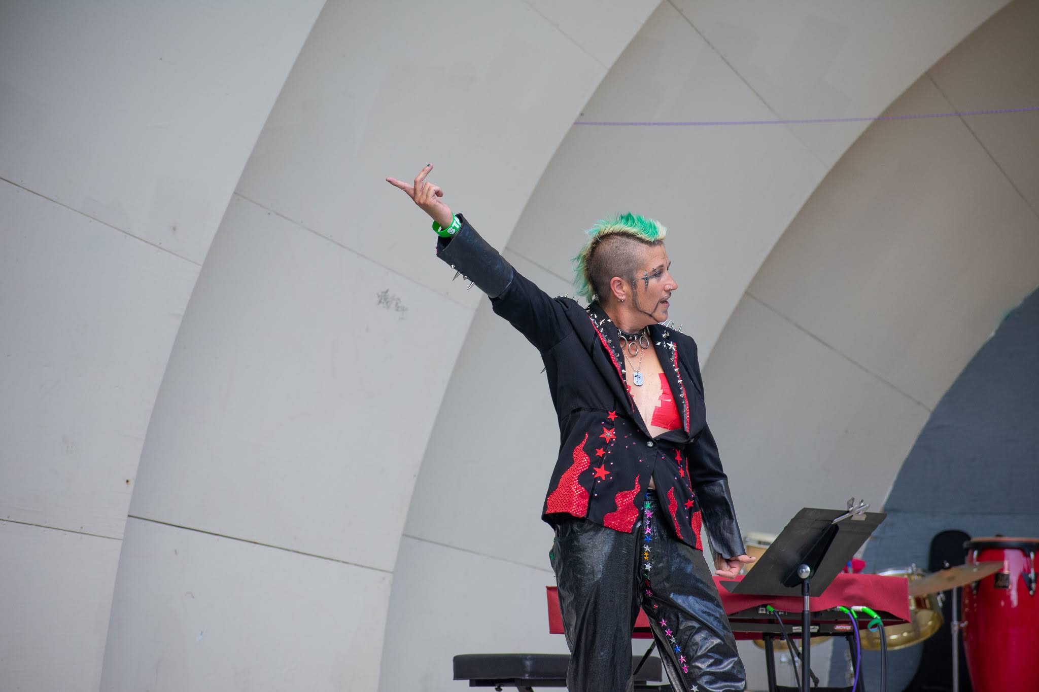 A drag king from Denver-based group Mile High KINGdom performs Sweet Dreams (Are Made of This) by Eurythmics and Marilyn Manson. Sep. 9, 2018. (Anna Haynes/CU Independent)