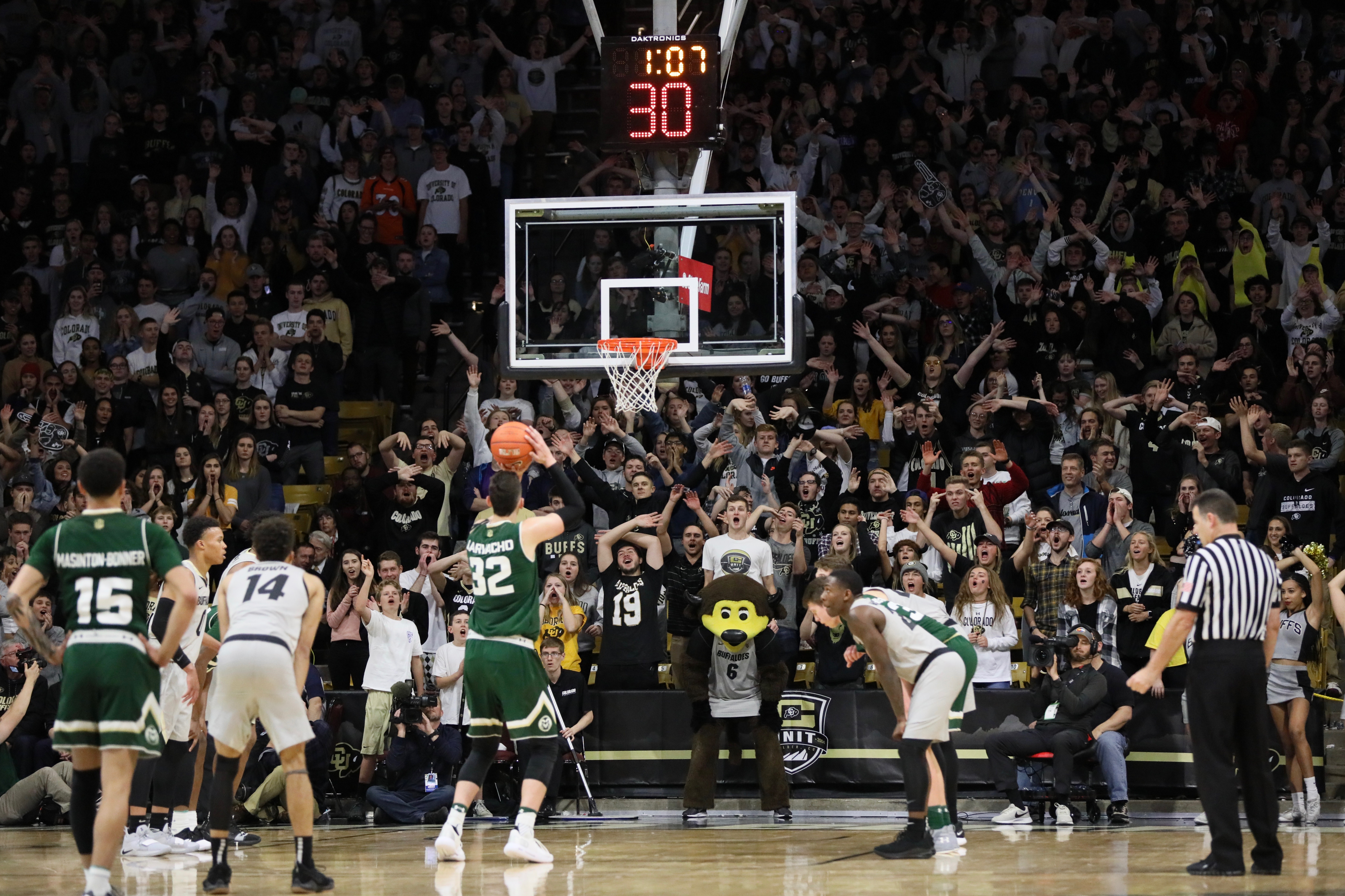 The Buffs hit jumper after jumper, as did the Rams to keep the score close. As the second half progressed, the Buffaloes steadily got back into the game and took the lead, beginning at the 17:23 mark on a layup from sophomore guard/forward Tyler Bey.
