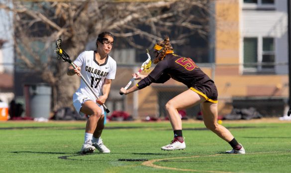 With the man advantage, CU couldn’t get anything going, but the Sun Devils did, as attacker Kerri Clayton ran with the ball behind the net and fired a pass to a diagonally-cutting Paige McGlothlin who beat CU junior goalie Julia Lisella over her left shoulder.