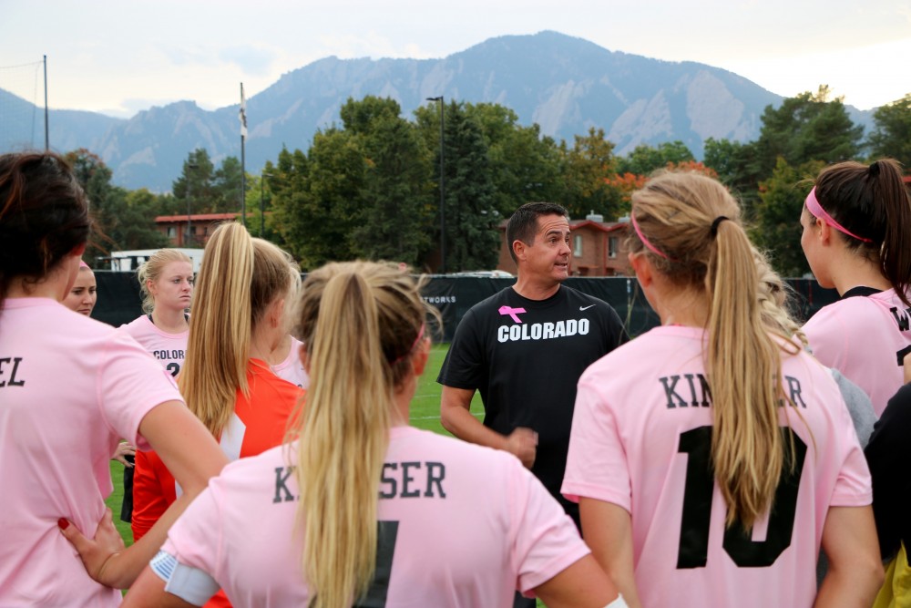Head Coach Danny Sanchez speaks to the Buffs following their double OT tie against the Washington Huskies. (Chanelle Tong/CU Independent File) Nigel Amstock