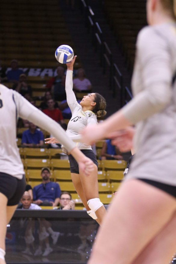 CU’s Justine Spann played well last week but was overall stifled by the tight CSU defense. She was glad to help the team bounce back this week with 21 kills.