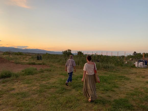 Nicole Dorfman, who wrote an investigative story for the CU Independent about the Twelve Tribes, during an undercover reporting trip in August to the Twelve Tribes Compound. She is being led on a tour by Andrew Wolfe, a leader in the Boulder community. (Lauren Sandal)