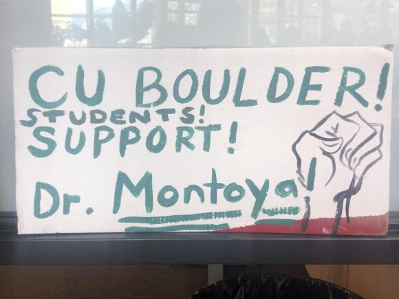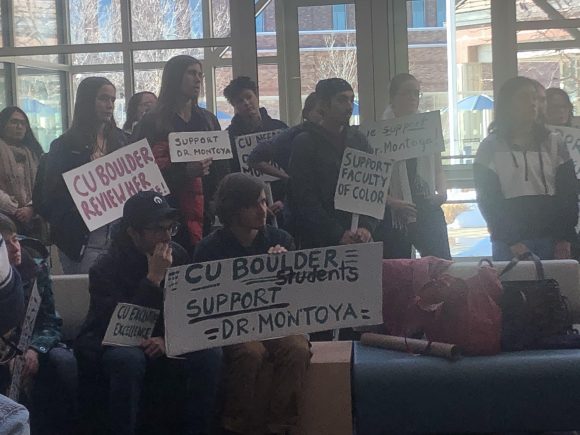 CU Boulder students and protest former assistant professor Lupita Montoya’s demotion. (Tory Lysik/CU Independent)