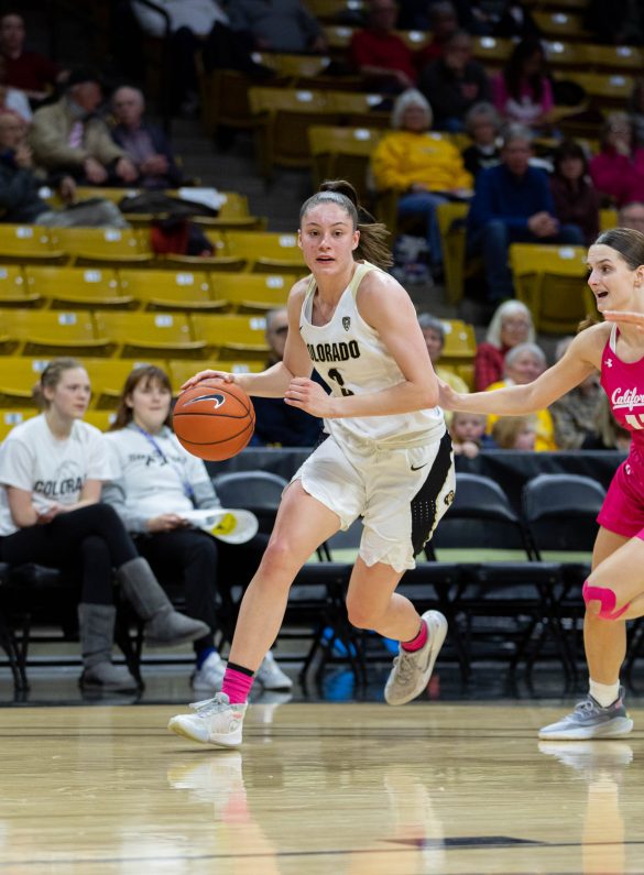 The CU defense was the highlight tonight as they were able to hold the Bears scoreless for several minutes in the third quarter and only give up one three-pointer the entire game, something the team has struggled with previously. Colorado controlled the lead for the entire second half even withstanding a quick 4-0 surge by California in the final minute of the game. The Buffaloes finally got a win to snap their losing streak with solid performances from the defense and freshman guard Jaylyn Sherrod.