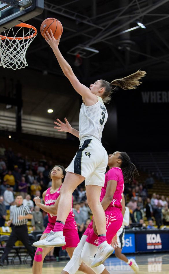 Colorado picked up the energy and got going at the end of the quarter going on an 8-0 run. Then tragedy struck early in the second quarter as Colorado sophomore guard Lesila Finau went down hard on a drive to the rim. Finau’s teammates helped her off the floor and she would not return for the rest of the game. It can be hard to see one of your teammates go down, but the Buffs weren’t fazed as they were able to hold on to the lead for the rest of the half with great defense. CU held Cal to 8-of-28 from the field in the first half and sophomore forward Emma Clarke had a monster block to send the game to halftime.